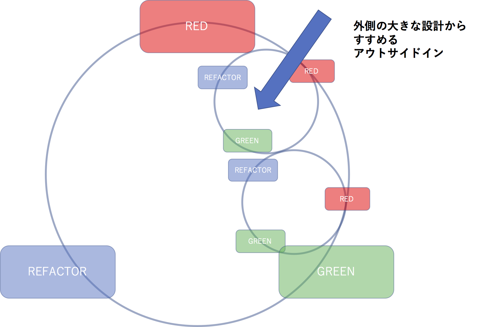 一方、アウトサイドインとは、構造の大枠から作っていき、徐々にその中身も作って要件を達成していくやり方です(図3)。大きく作るため作りにくい代わりに要件との不一致は起きにくいです。