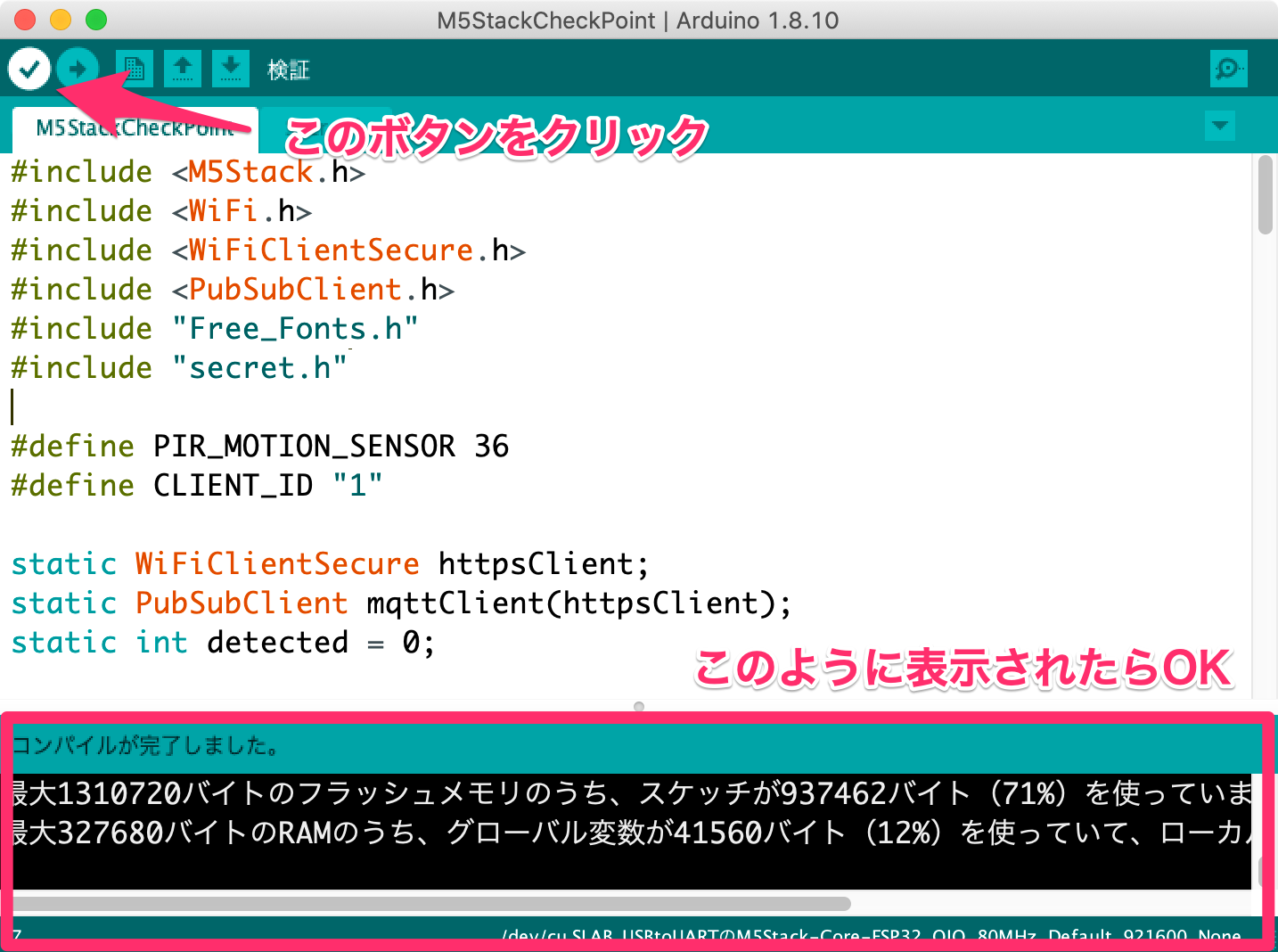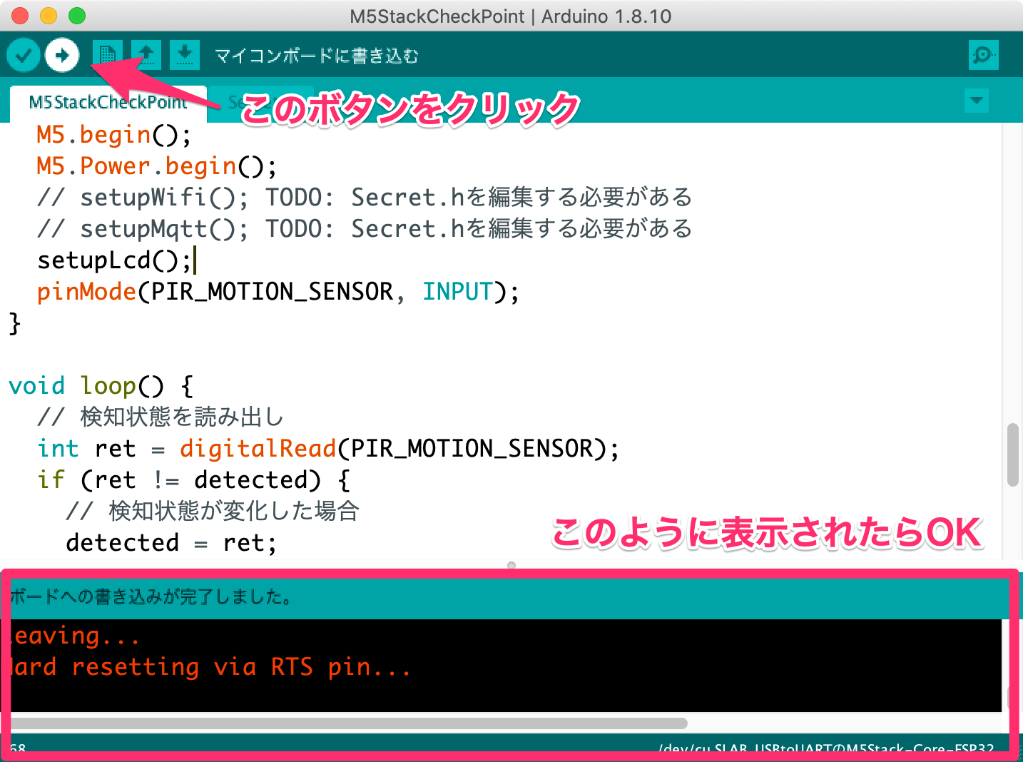 ダウンロードが完了したらZipファイルを解凍し、M5StackCheckPoint.inoをArduino IDEで起動してください。
